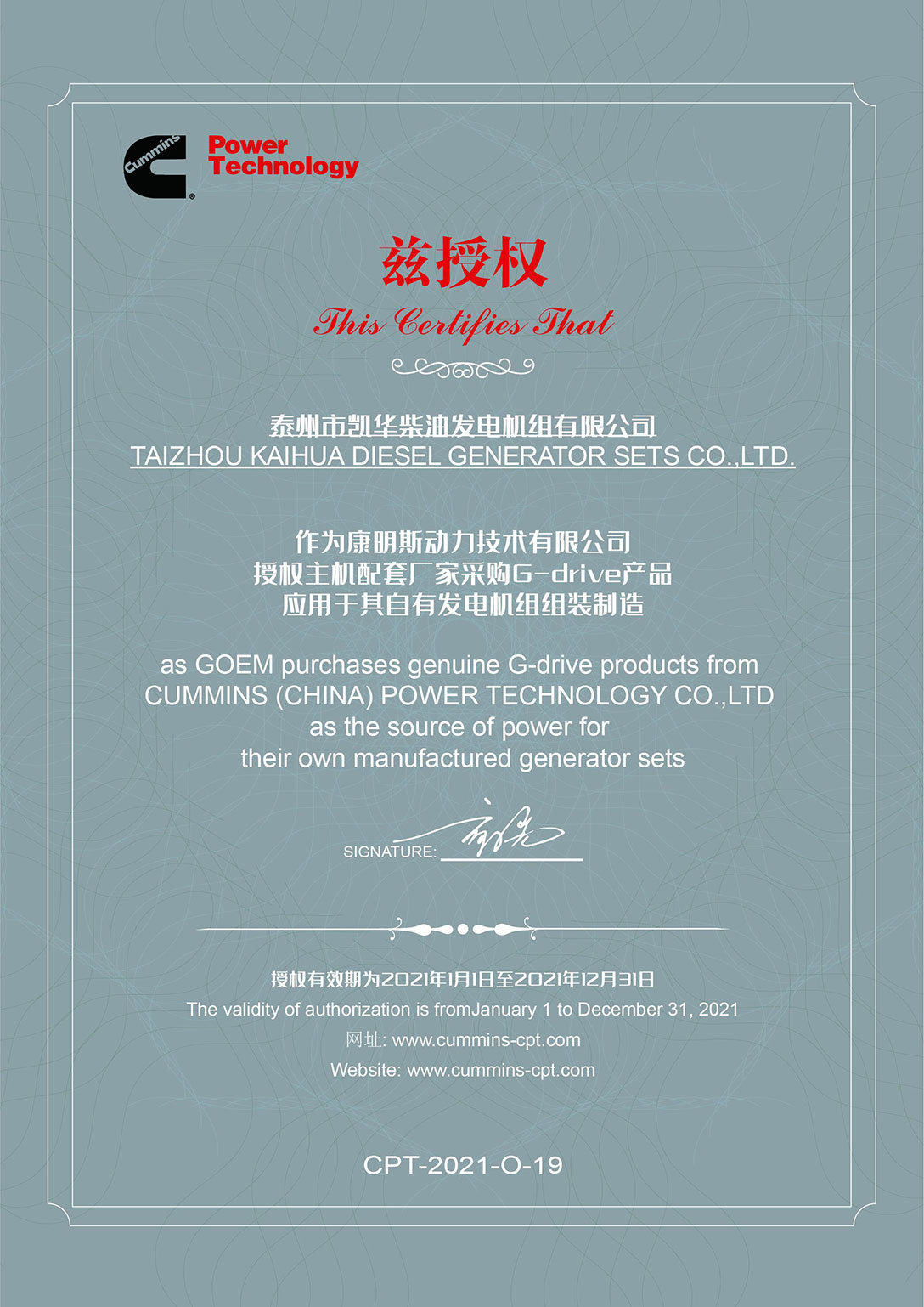 泰州市凱華柴油發(fā)電機(jī)組有限公司創(chuàng)建于2003年,是一家集柴油發(fā)電機(jī)組燃?xì)獍l(fā)電機(jī)組的研發(fā)、生產(chǎn)、銷售為一體的高新技術(shù)民營企業(yè),公司座落于“漢唐古郡,淮海名區(qū)”,具有“鳳凰城”美稱的祥泰之州——江蘇省泰州市,地處中國經(jīng)濟(jì)最發(fā)達(dá)的長三角經(jīng)濟(jì)圈,水陸空立體交通,地理位置十分優(yōu)越。公司目前注冊資本金11800萬元人民幣,生產(chǎn)基地占地六十畝,現(xiàn)有各類高素質(zhì)員工一百多名,專業(yè)技術(shù)人員達(dá)46人,其中高級技術(shù)人員16人,年銷售額近6億元。 公司主營產(chǎn)品:3~3000KW陸用柴油發(fā)電機(jī)組,15~600KW移動拖車電站,12~1000KW船用應(yīng)急柴油發(fā)電機(jī)組,各種靜音型、中高壓、多機(jī)并聯(lián)、燃?xì)獾忍胤N機(jī)組以及進(jìn)口系列柴油發(fā)電機(jī)組,可滿足不同客戶的一切電力需求,還可滿足用戶不同電壓、不同頻率的要求。凱華公司是康明斯品牌的授權(quán)代理商,專業(yè)生產(chǎn)供應(yīng)康明斯柴油發(fā)電機(jī)組。